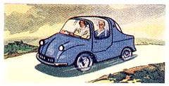 Britain. This four-wheeler mini-car is of unusual shape. It is semi- panoramic, and entrance is gained by the centre section opening from the left side. Powered by a 197 cc Villiers engine has a speed of 45 m.p.h.