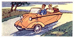 Germany. The "Roadster" offspring of another famous firm, is the three-wheel version. It has an air-coooled 191 cc engine fitted in the rear, capable of approximately 65 m.p.h. Seats two and one child (small), tandemwise