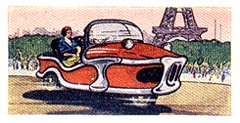 France. This is a prototype three-wheeler, constructed of aircraft style laminated plastic. It has pneumatic cushioning and, like the Bond, its power-unit is fitted to its single front wheel.